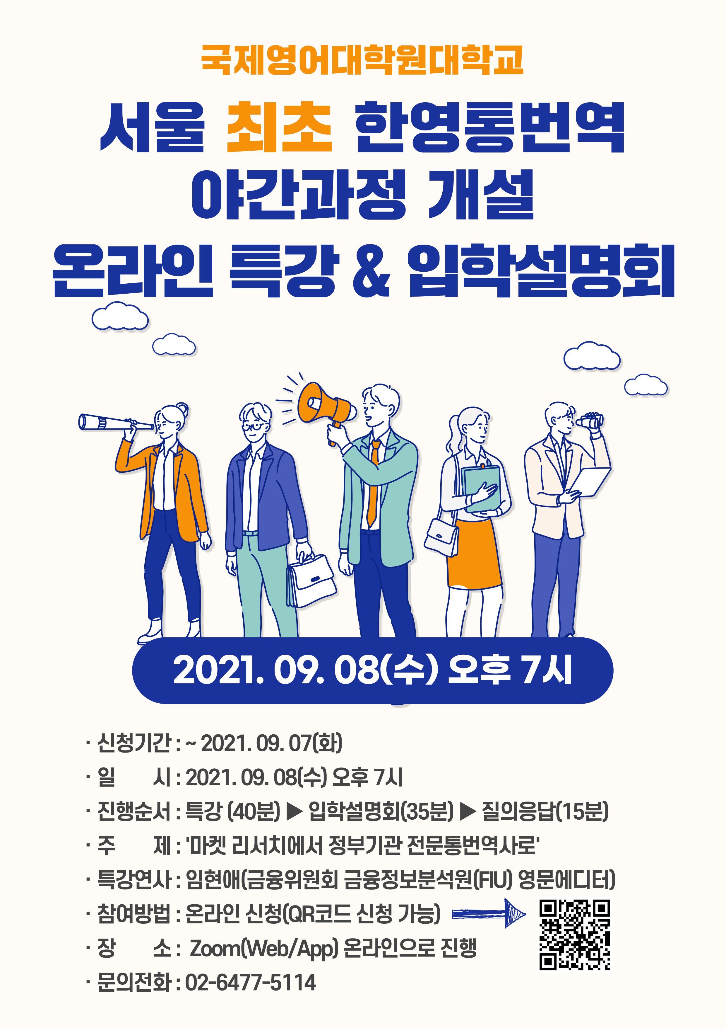 국제영어대학원대학교 한영통번역 석사 야간과정 개설 온라인 특강 및 입학설명회